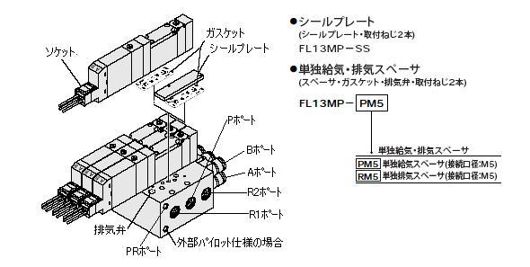 単独給気スペーサ FL13MP-PM5 スペーサ・ガスケット・排気弁・取付ねじ2本