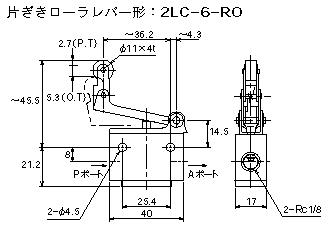 外形寸法図/2ポート・片ぎきローラレバー形 2LC-6-RO