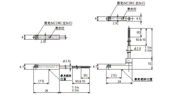 外形寸法図/磁気近接形/有接点(2線1灯式) 「PD形」